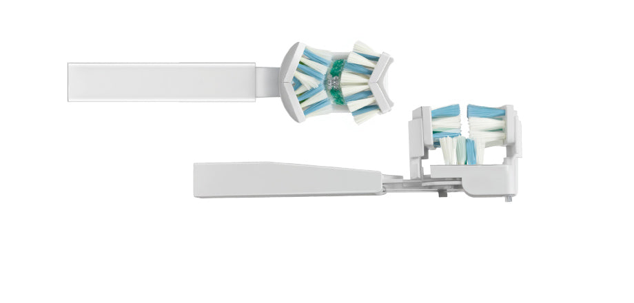 Clean all tooth surfaces simultaneously with our triple-sided brush head